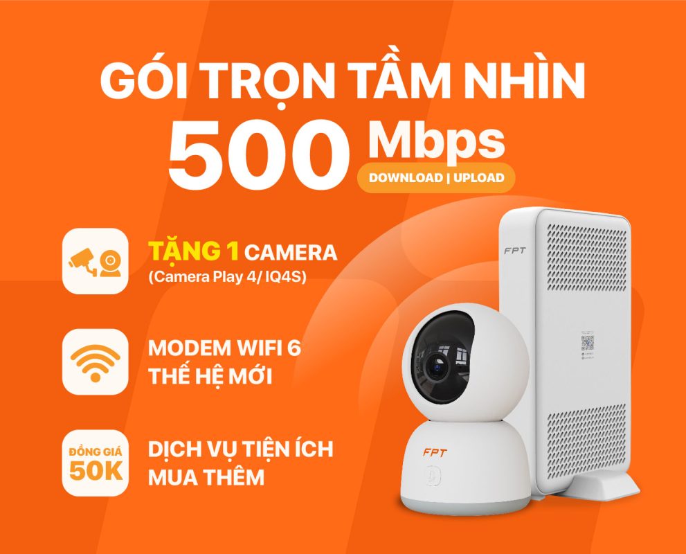 Gói 12 tháng: Voucher mua hàng 200.000 vnđ, Tặng 1 tháng cước , quà tặng FPT kèm tài khoản App Fptplay, Modem Wifi 4 cổng 2 băng tần, đầu thu 4K, Tặng Voucher mua Camera